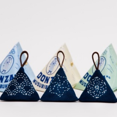 淡路島の漁師着“ドンザ”に着想を得た、藍染と刺し子の香り袋。